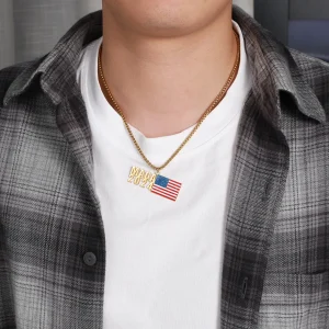 Custom American Flag Trump MAGA Necklace